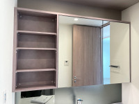 既存のオープン棚にミラー扉を取付て3面鏡にしました。 |