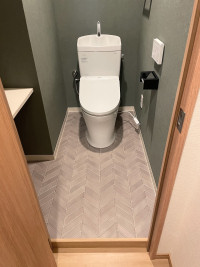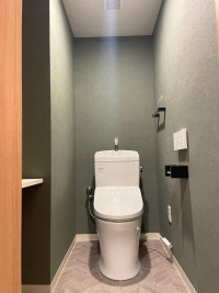 トイレは標準的な便器ですが内装を凝って仕上げたことでオシャレなトイレに生まれ変わりました。