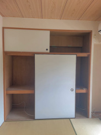 和室はフローリングに変更して、押入は撤去してクローゼットと可動棚を設置しました。