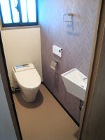 全体的に暗い色調で特に水廻りが薄暗い印象。収納量も標準的ですが、お客様にとっては全く不足しているようです。